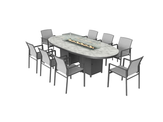 - Inklusive 4 Schutzgläser für die Feuerstelle, eine Abdeckplatte für die Verwendung des Tisches ohne Feuerfunktion sowie einen ca. 1 m langen Schlauch. Die Gasflasche (Propangas mit einem Inhalt bis 11 Kg) ist nicht im Lieferumfang enthalten