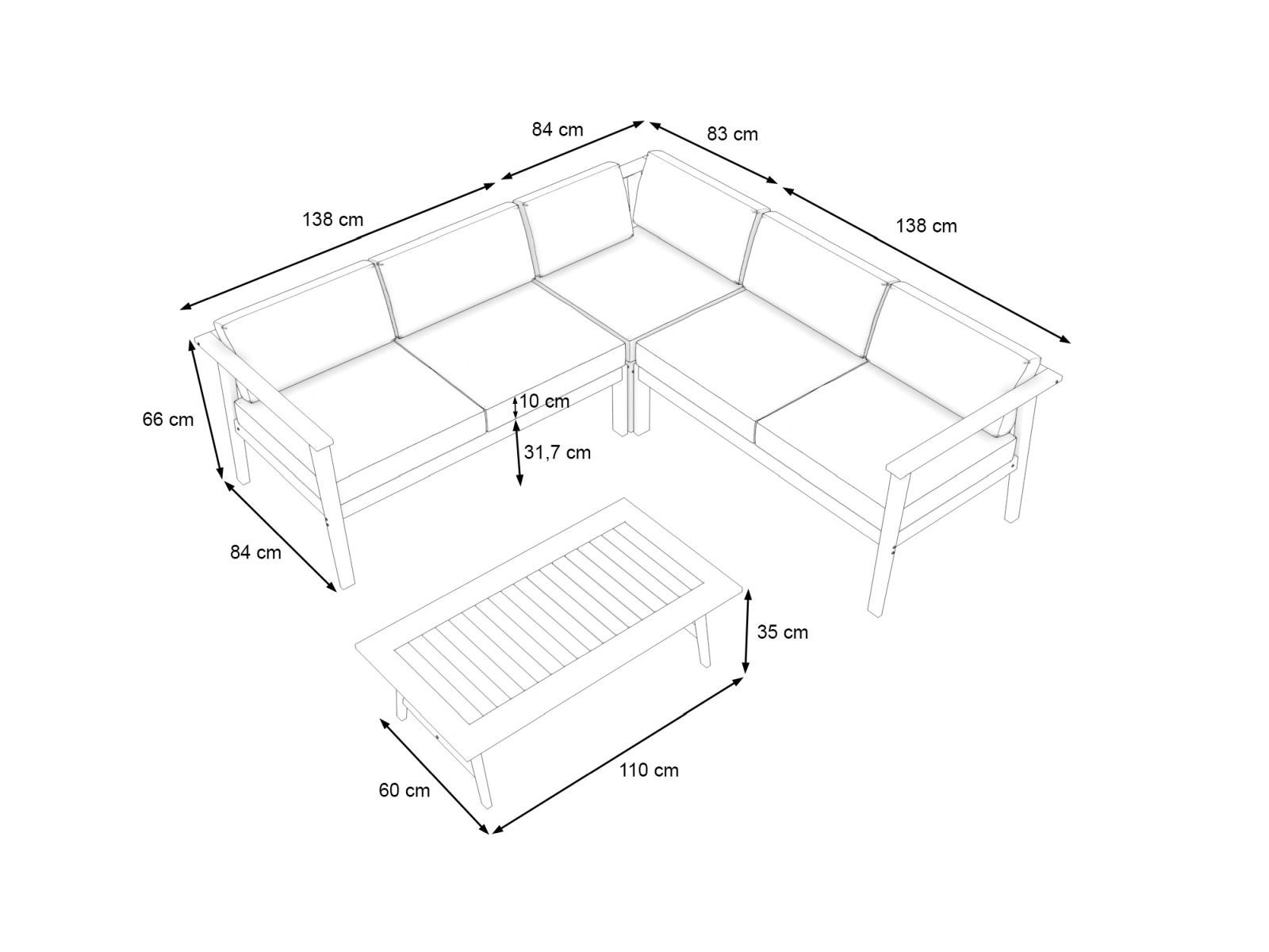 Komfortables Lounge Set aus Akazie