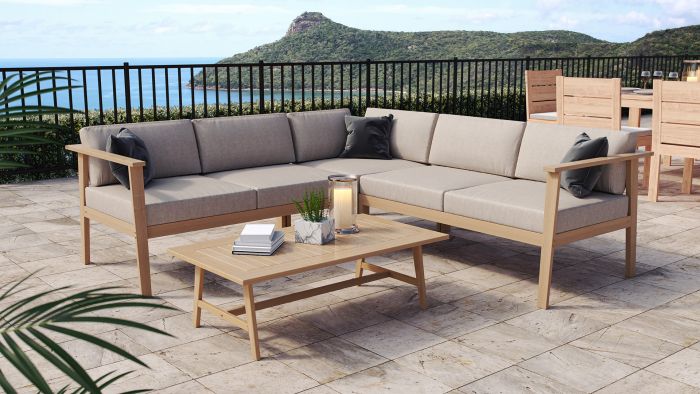 Holen Sie sich diese traumhafte Lounge mit ihrer warmen Ausstrahlung auf Ihre Terrasse. Das Lounge Set MIKOTO erhalten Sie in den Größen M und L.Die Holz Produkte sind FSC-zertifiziert.