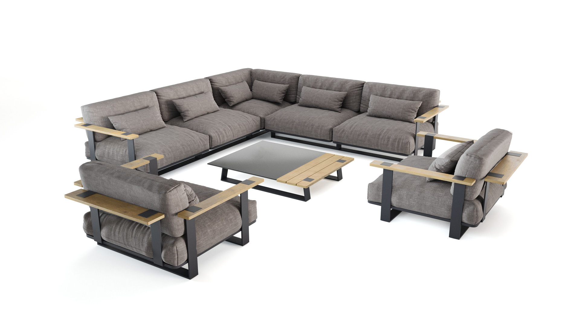 Die Aura Lounge XL vereint großzügige Dimensionen mit edlem Design: Aluminiumrahmen in Anthrazit, massive Teakholz-Akzente und dicke Polster sorgen für Komfort und Eleganz. Perfekt für stilvolle Gartenmomente – als Highlight einer exklusiven, durchdachten Designer-Kollektion.