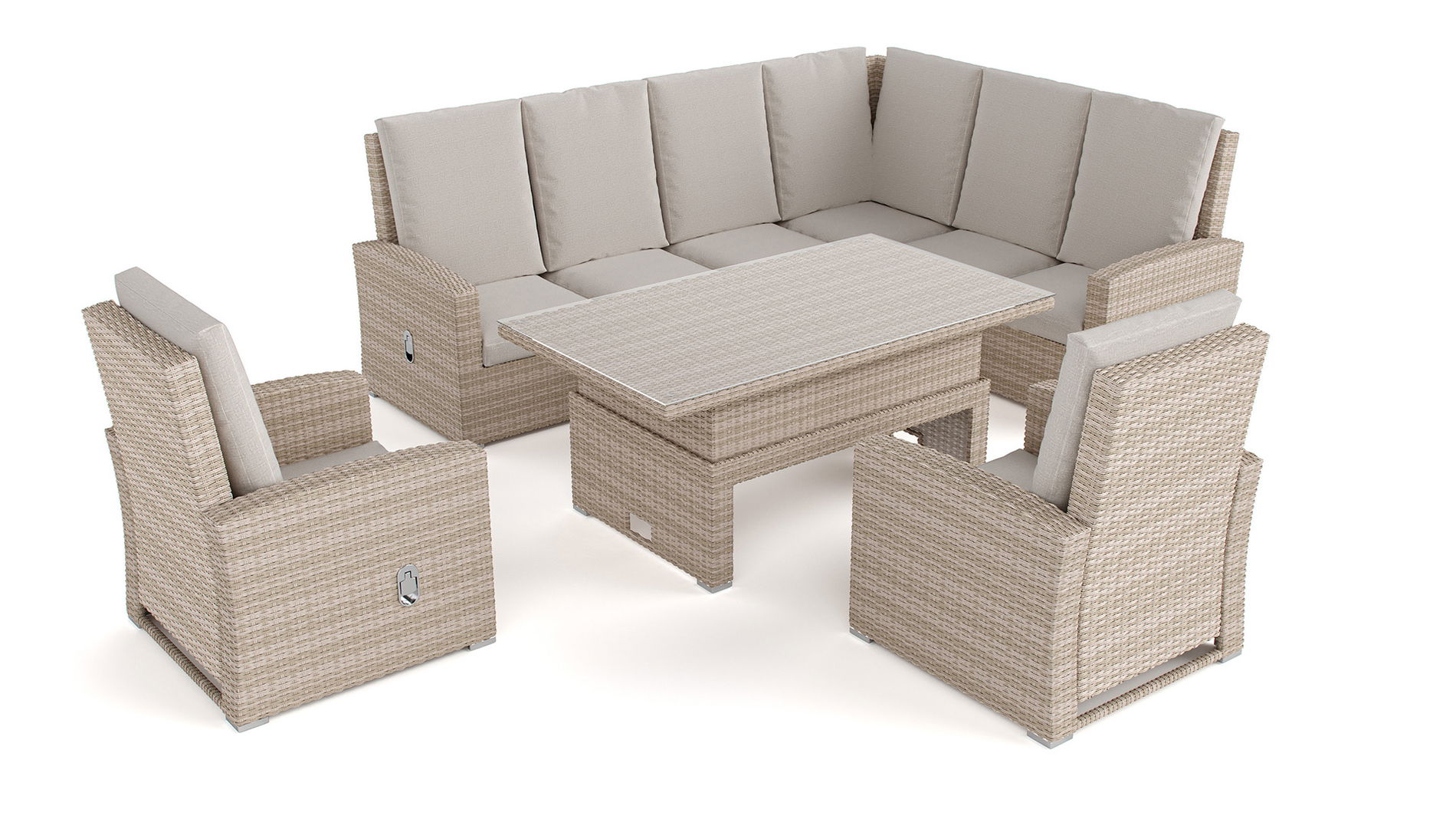 - Der multifunktionale Tisch ist zu einem Ess- oder Couchtisch umfunktionierbar - dank Höhenversteller