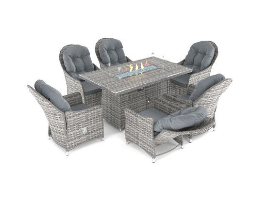 - Inklusive 4 Schutzgläser für die Feuerstelle, eine Abdeckplatte für die Verwendung des Tisches ohne Feuerfunktion sowie einen ca. 1 m langen Schlauch. Die Gasflasche (Propangas mit einem Inhalt bis 11 Kg) ist nicht im Lieferumfang enthalten.