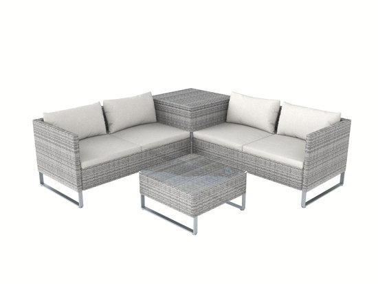 Die Lounge der City Collection punktet mit einem Gestell aus robustem Aluminium und einem Geflecht aus elegantem Rattan. Sitzflächen und Rückenbereiche sind mit komfortablen Kissen gepolstert. Dank der vielseitigen Stellmöglichkeiten können Sie die Sitzgruppe sowohl auf großen Terrassen als auch auf schmalen Balkonen platzieren. Mit nur wenigen Handgriffen lässt sie sich immer wieder neu arrangieren. Die praktische Aufbewahrungsbox ist ein wahres Stauwunder und rundet das Set perfekt ab.